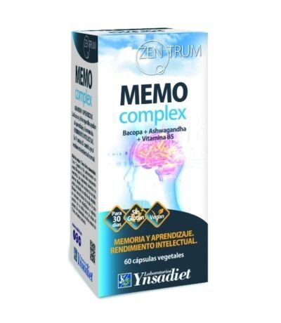 Memocomplex Zentrum 60 cápsulas de Ynsadiet es un complemento alimenticio diseñado para ayudar con la memoria y el rendimiento cognitivo.